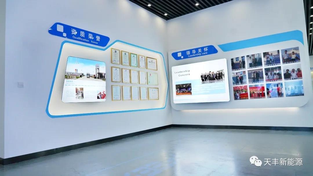 2020年8月,天豐新能源企業(yè)文化展廳正式落成,并將在本月正式啟用,整個展廳設(shè)計包括:企業(yè)簡介、品牌文化、發(fā)展歷程、資質(zhì)榮譽(yù)、領(lǐng)導(dǎo)關(guān)懷、生產(chǎn)流程、產(chǎn)品類別、場景方案、案例展示、合作伙伴十大方面,從形象、發(fā)展、成就、未來等多個角度為客戶呈現(xiàn)出天豐新能源充盈飽滿的品牌力量,這是天豐新能源精神堡壘的重要組成。